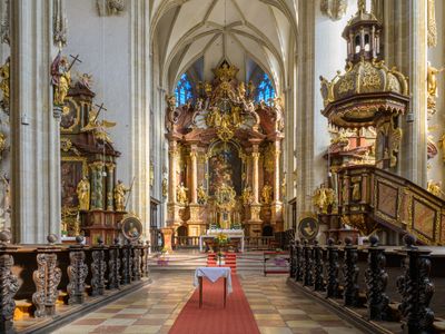 Kościół zawiera barokowy ołtarz główny stworzony przez Josepha Marię Götz i obraz ołtarzowy Martina Johanna Schmidta z XVIII wieku przedstawiający Wniebowzięcie Maryi. Te dzieła sztuki kształtują wnętrze i odzwierciedlają religijne oddanie praktykowane tutaj.