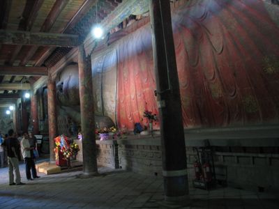 Świątynia mieści jeden z największych krytych posągów leżącego Buddy w Chinach, umieszczony w specjalnej sali o określonych cechach architektonicznych.