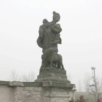 Socha svatého Jeronýma u zdi zahrady špitálu v Kuksu