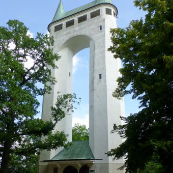 Wieża została zbudowana w 1906 roku dzięki wysiłkom producenta papieru Louis Laiblin i zaprojektowana przez architekta Theodora Fischera. Jej budowa reprezentowała wczesne wykorzystanie betonu zbrojeniowego do tego typu konstrukcji.