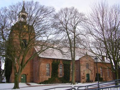 St. Nicolaikirche, Barokowy kościół z cegły w Wittmund, Niemcy.