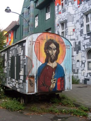 Kiefernstraße, Kompleks mieszkaniowy ze sztuką uliczną w Flingern-Süd, Düsseldorf, Niemcy