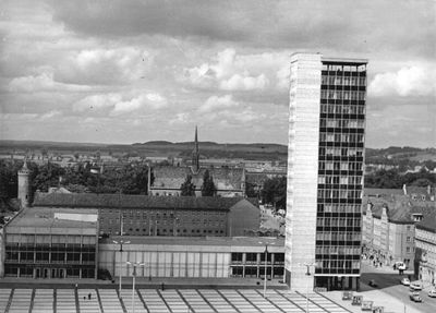 Architekt Iris Grund, uczennica Hermanna Henselmanna, zaprojektowała ten socrealistyczny budynek, który otwarto 17 lipca 1965 roku.