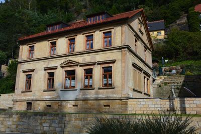 Wohnhaus in offener Bebauung und Stützmauer Elbufer 91, house in Bad Schandau, Germany
