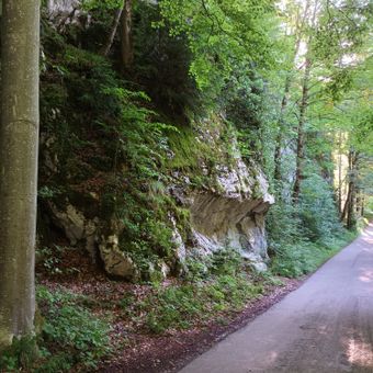 Aufschluss in Kalksteinen der Adnet-Formation am Alpsee, Geotop in Landkreis Ostallgäu in Bavaria, Germany