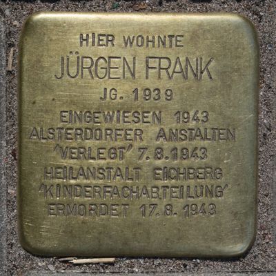 Stolperstein dedicated to Jürgen Frank, Stolperstein in Hamburg-Schnelsen