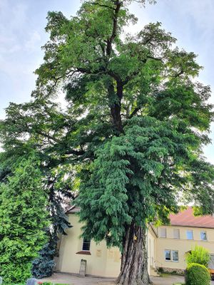Black locust at the cemetery Mutzschen, natural monument in Grimma Municipality, Saxony, Germany