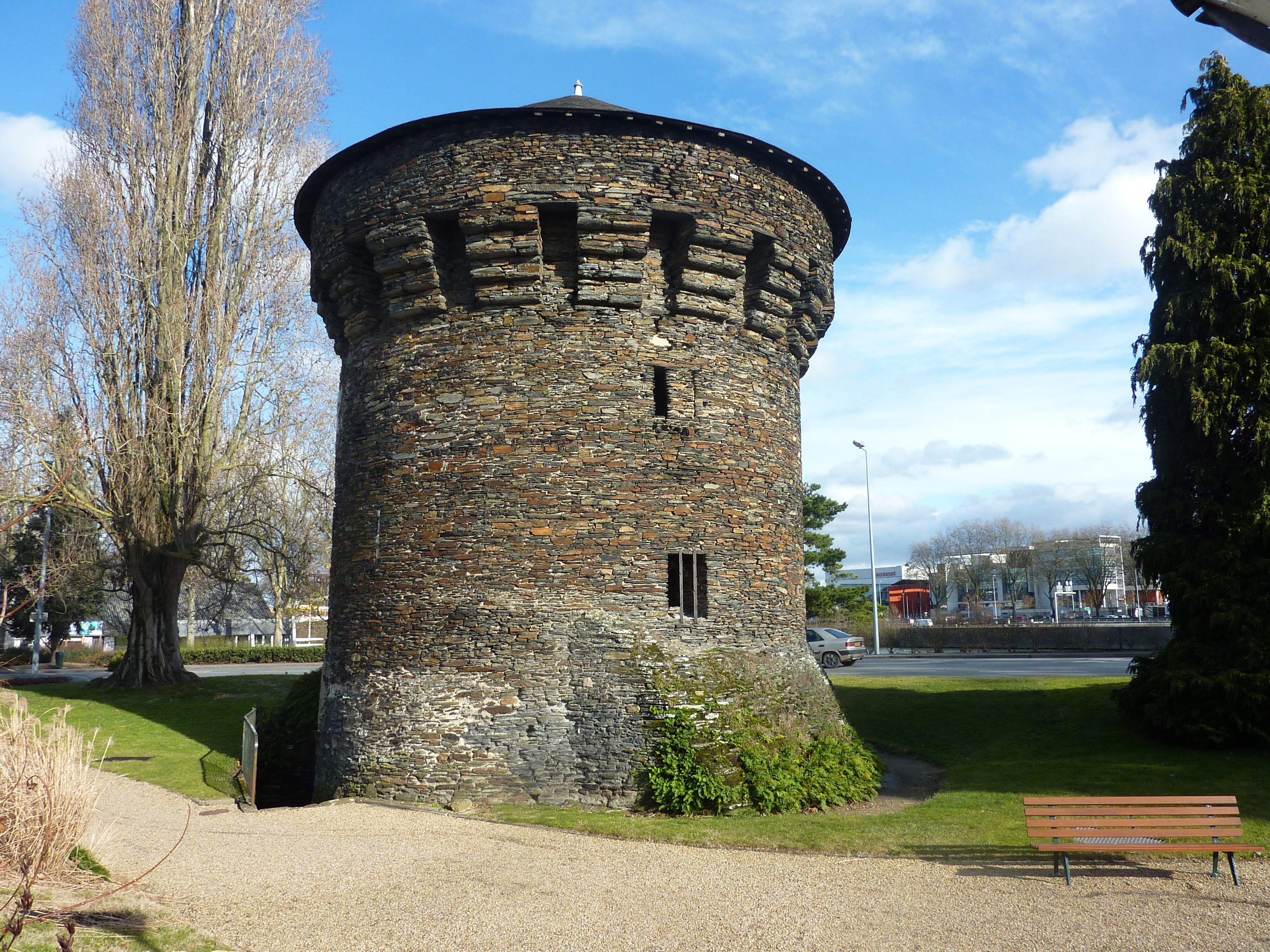 Zbudowana w 1448 roku podczas panowania Rene Andegaweńskiego, wieża kontrolowała dostęp do rzeki za pomocą metalowych łańcuchów rozciągniętych nad Maine.