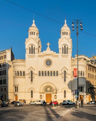 Świątynia Waldensów prezentuje białą fasadę z dwiema wieżami i stoi w pobliżu Watykanu, zbudowana z żelbetu w 1911 roku.