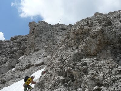 Na szczycie znajduje się tradycyjny alpejski krzyż, odzwierciedlający silne wpływy katolickie w regionie Dolomitów i oznaczający najwyższy punkt.