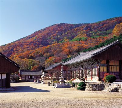 Położona na zboczach góry Dosolsan przy wybrzeżu Morza Żółtego, świątynia Seonunsa zawiera 13 budynków, w tym główną salę Daeoongbojeon.