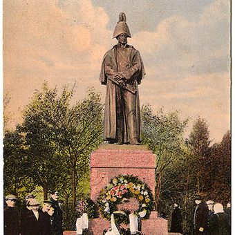 Oryginalny pomnik z 1913 roku upamiętniający dowódcę sił rosyjskich przeciwko Napoleonowi został przetopiony podczas pierwszej wojny światowej.