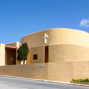 Kościół parafialny św. Józefa charakteryzują zakrzywione ściany i kształty inspirowane tradycyjnymi maltańskimi chatami zwanymi girna, wykorzystując lokalne materiały.