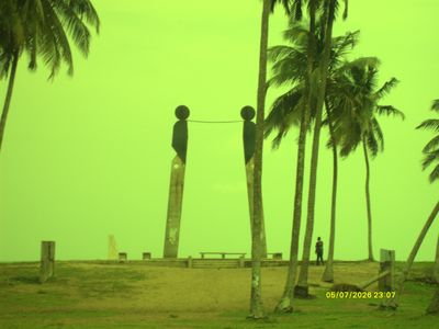 Na wyspie przybrzeżnej znajdują się dwa ceremonialne słupy zwrócone w stronę Oceanu Atlantyckiego, oznaczające ważny punkt dawnego szlaku niewolników.