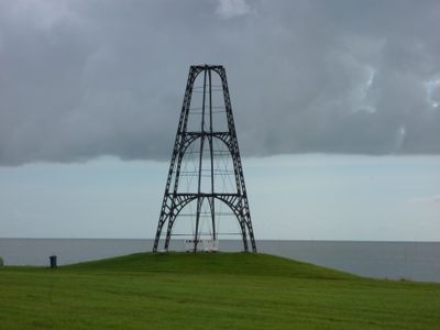 Żelazna latarnia morska wznosi się na wysokość 15 metrów przy Morzu Wattowym, składając się z czterech poziomów wspartych na sześciu filarach.