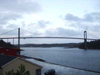 Most Tromøy rozciąga się na 400 metrów nad cieśniną Tromøysundet, łącząc wyspę Tromøya z kontynentalną Norwegią poprzez konstrukcję betonowo-stalową.