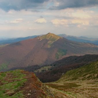 Połonina Caryńska rozciąga się między dolinami rzek Dwernik i Wołosaty, z czterema szczytami gdzie Kruhly Wierch osiąga 1297 metrów.