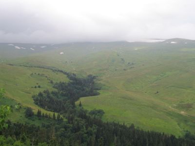 Góra Czugusz wznosi się na wysokość 3.238 metrów jako najwyższy punkt Adygei, wyznaczając granicę między strefami klimatu umiarkowanego i alpejskiego.