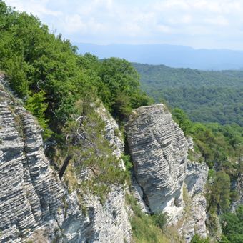 Orlinye Skaly to formacja skalna z wapienia, która wznosi się około 379 metrów nad wąwozem Aguru z Morzem Czarnym i Kaukazem w tle. Miejsce obejmuje jaskinię dostępną drabinką metalową i oferuje widoki rozciągające się od góry Ahun do wód Morza Czarnego.